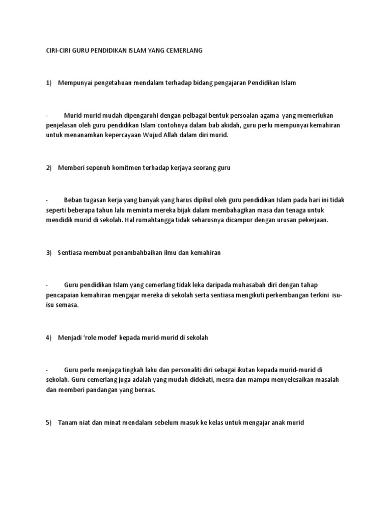 Ciri Guru Pendidikan Islam Cemerlang Pdf